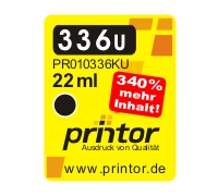 Printor PR010336KU, umgebaute u. befuellte Tintenpatrone zu HP C9362EE Nr. 336, schwarz 340 % mehr Inhalt printor article number: PR010336KU MPN at the original: C9362F special feature: 340 % mehr Inhalt page yield: ~900 Seiten article type: Tinte compatible / rebuild filling amount: 22 ml color: black